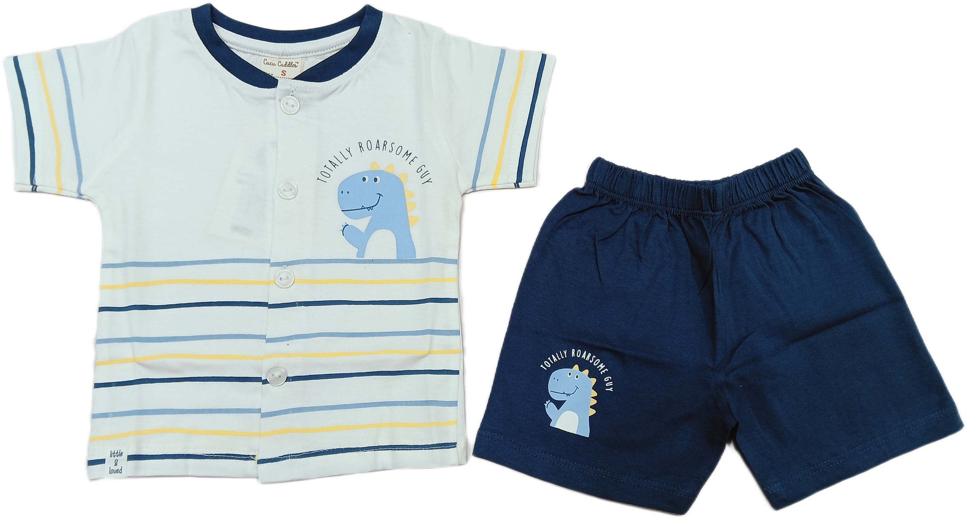 Baby boys Half Sleeve Front Open Printed T Shirt With Short - white
