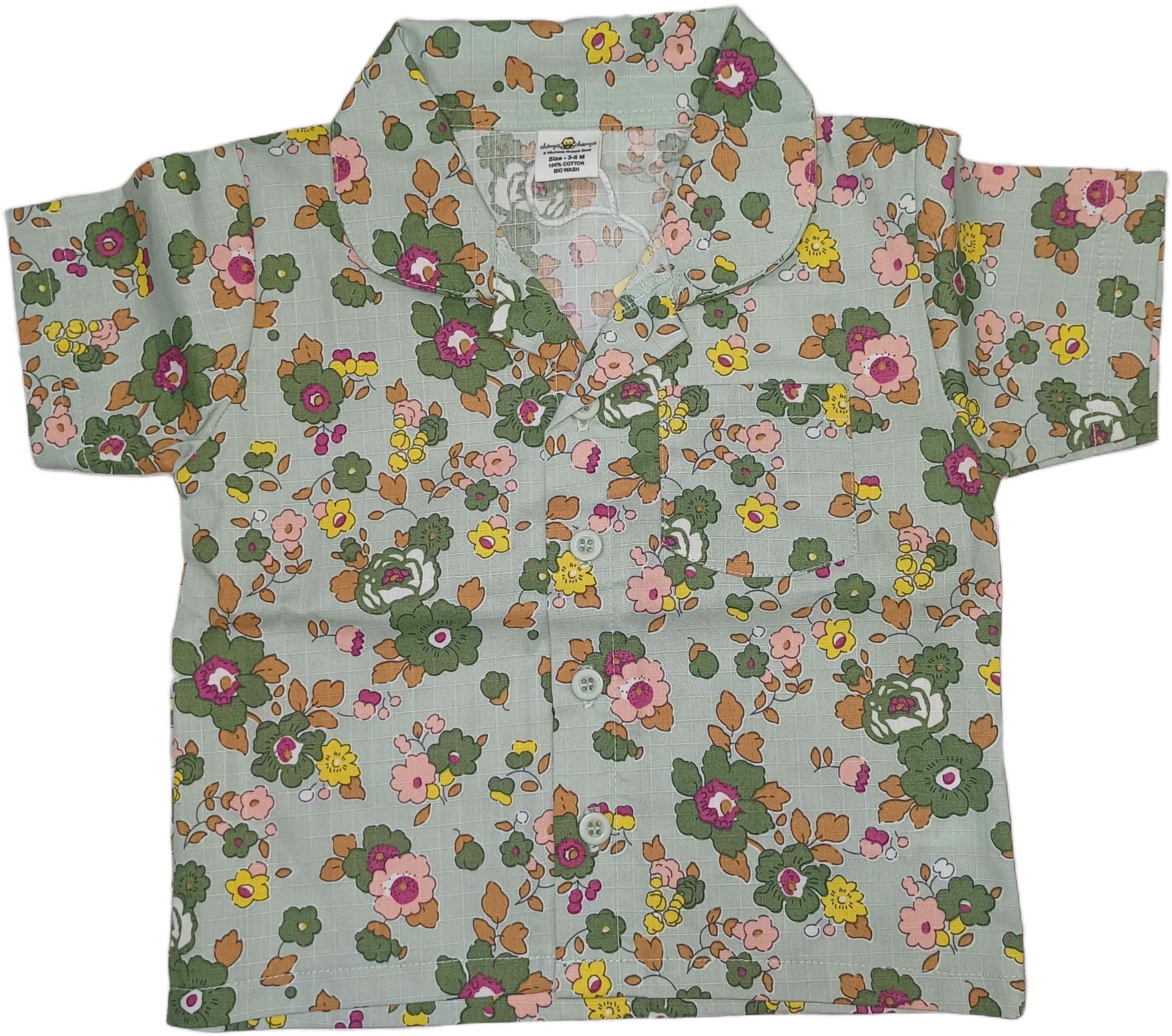 Baby Girl Floral Half Sleeves Top with Short - Green