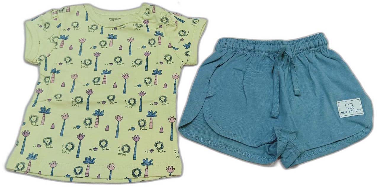 Cucumber Girls Cotton Half Sleeve Top with Short - Green