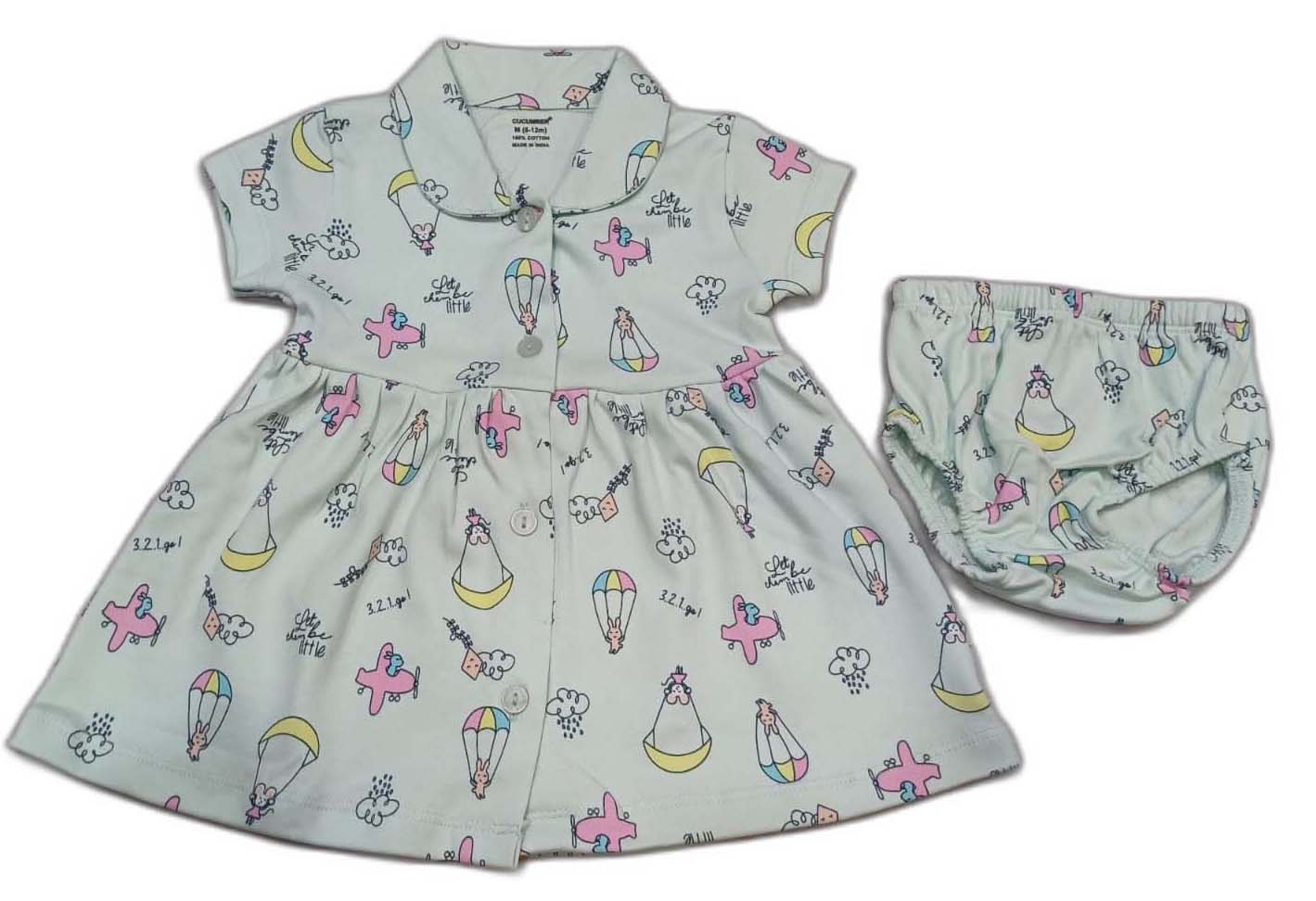 CUCUMBER Interlock Knit Half Sleeves Front Open Frock with panty- skyblue