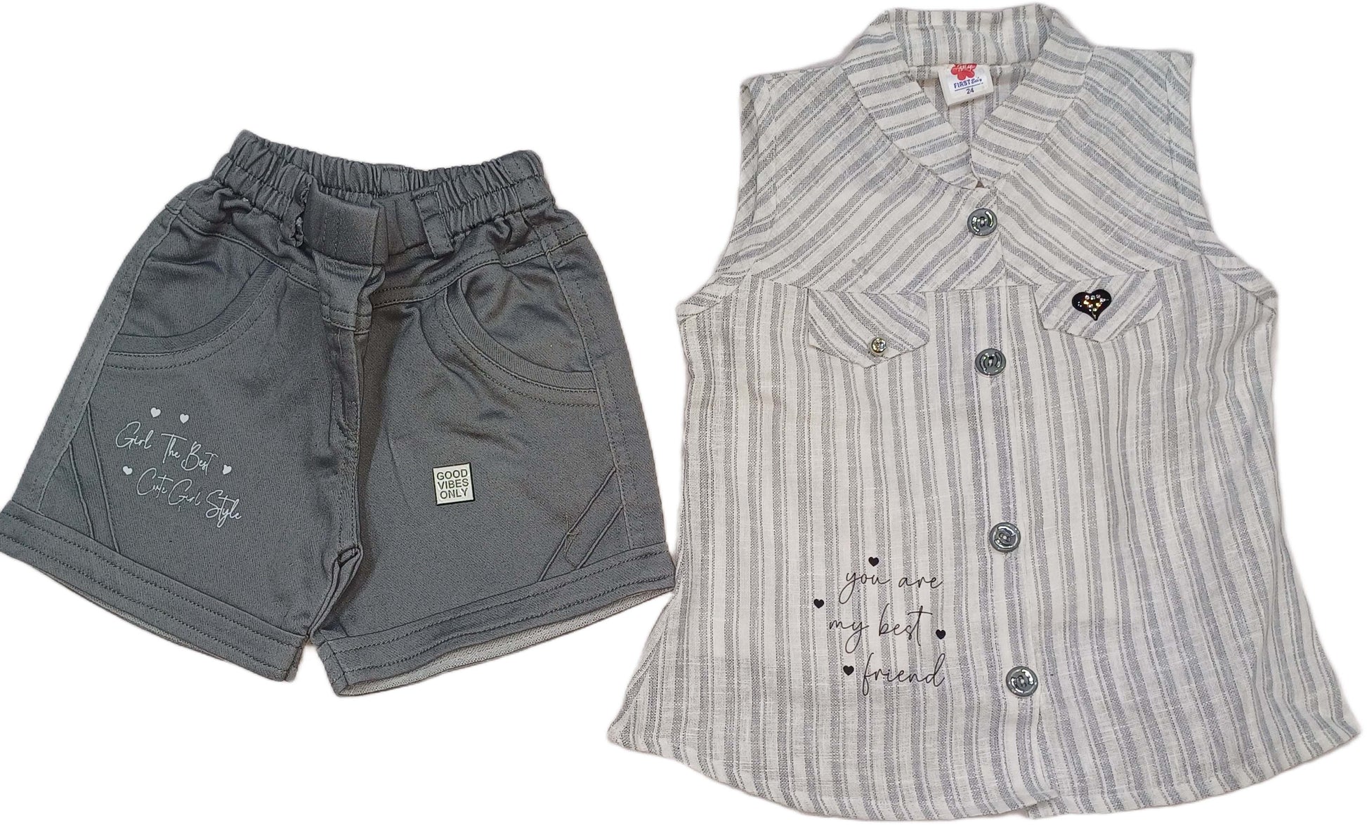 Girl Girls Sleeveless Top with Denim Short